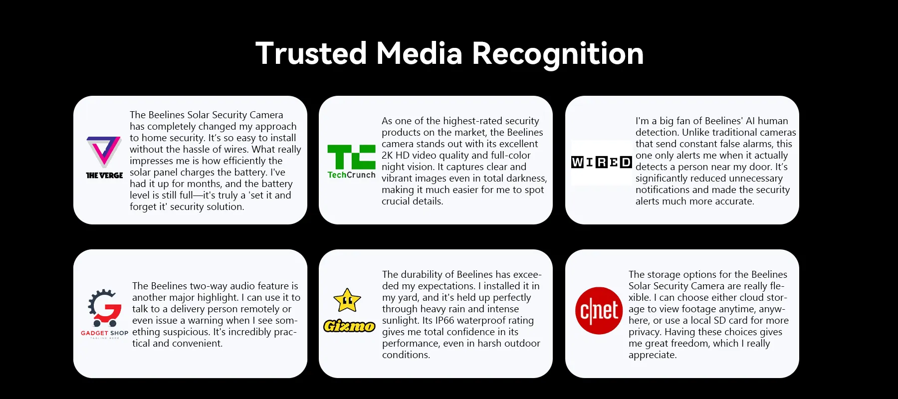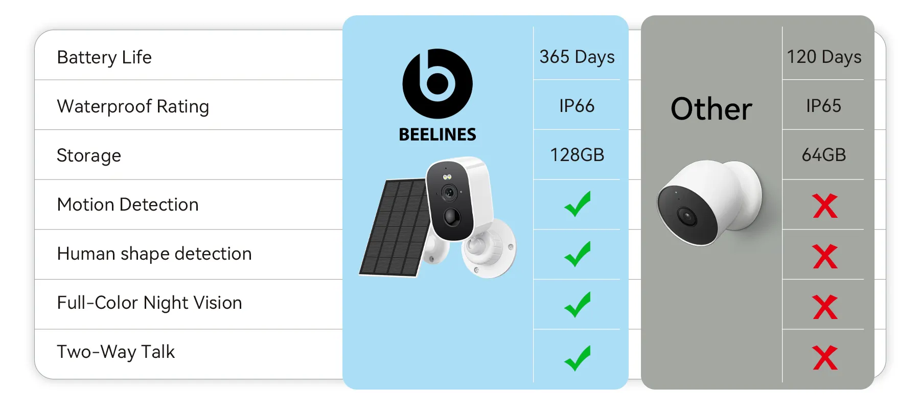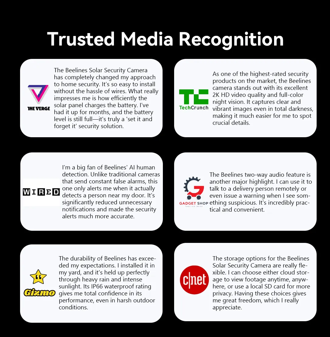 And so, the Beelines Solar Security Camera was born. It uses solar technology to provide continuous, wire-free protection. The promise of Beelines is simple: to use smart, sustainable technology to make home security easy, reliable, and to give you genuine peace of mind.